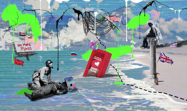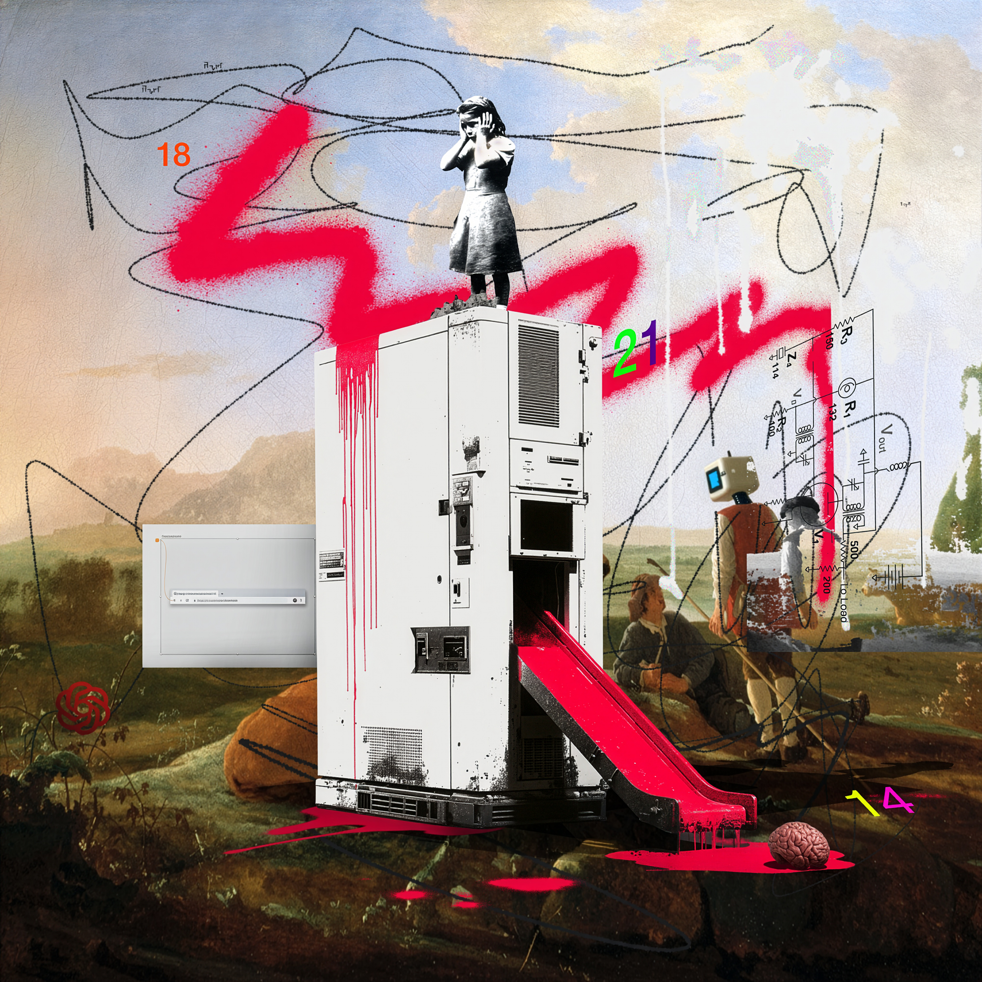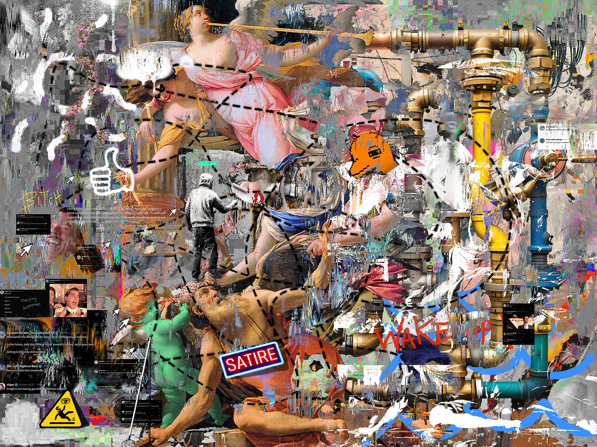 Hyperreality, our time of NFT, financial institutions and self protection. This is a rework of "La Bacchante" by William Bouguereau which depicted a ram attacking a woman. Times have changed, hyper-real surrealism to define our time.